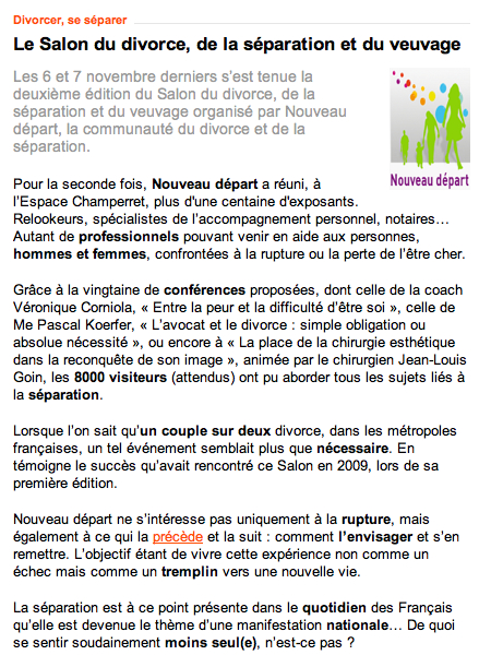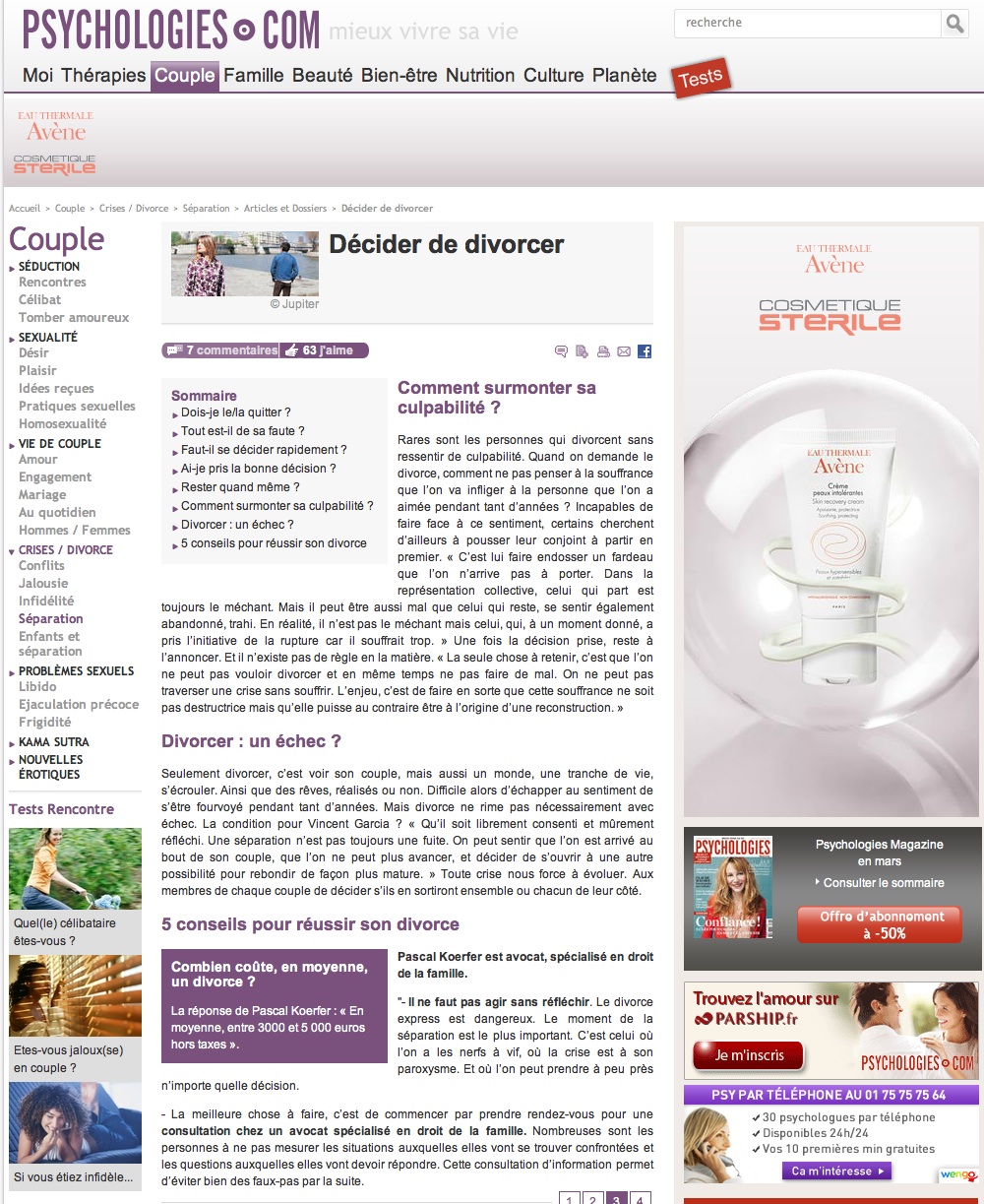 Fergus O’ReillyDublin, IrlandeJ’ai rencontré Monsieur KOERFER à un moment où j’étais assez désemparé : l’avocat alors en charge de mon divorce se désintéressait de mon dossier et le laissait trainer. Maître KOERFER a pris sa succession et c’était un vrai soulagement de faire face à quelqu’un qui ne faisait pas semblant de m’écouter mais était réellement attentif à mes problèmes. Je ne peux que louer son approche humaine de la relation au client.